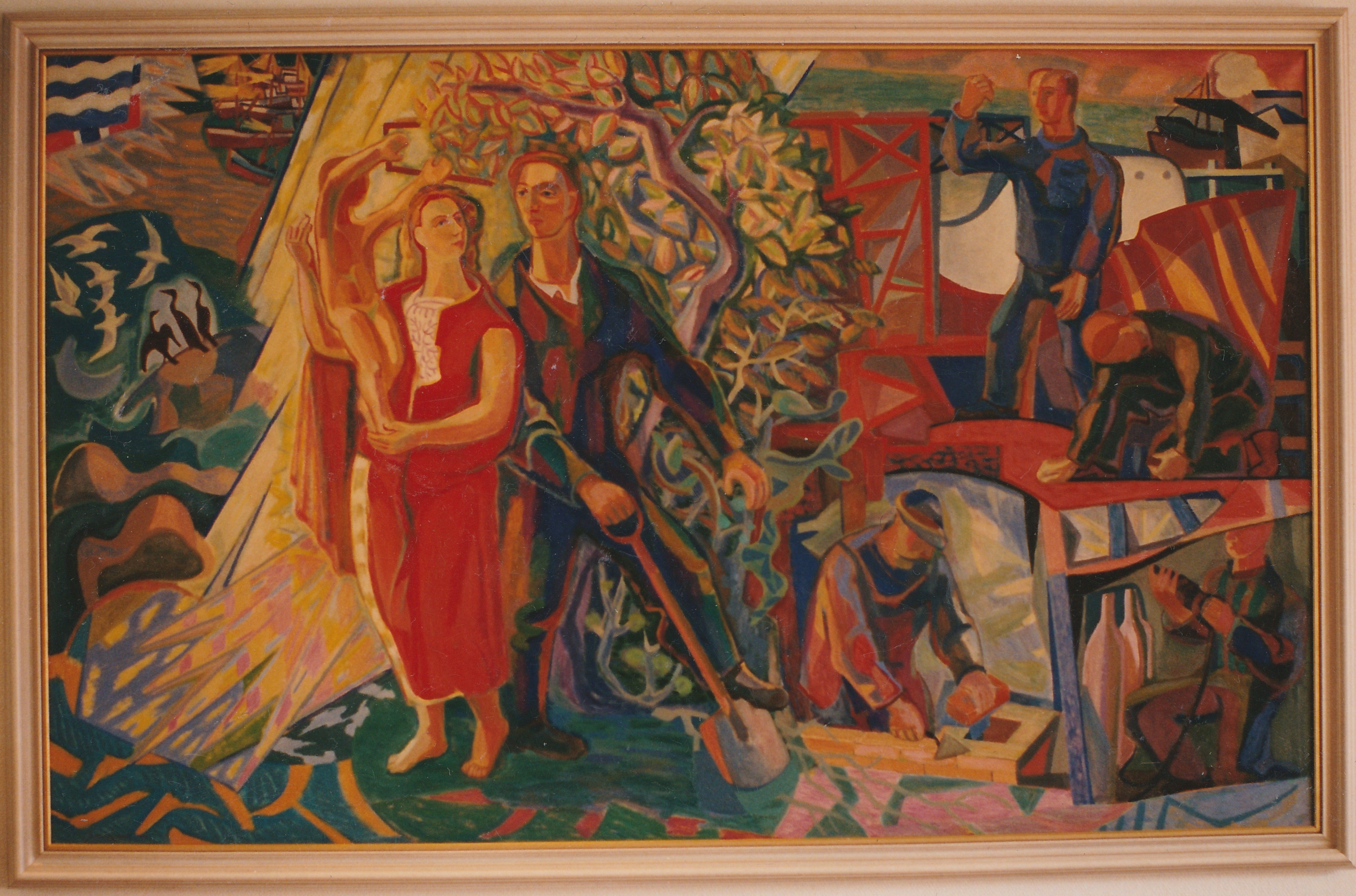 Åse Alstadsæter fra Sandsøy vil fortelle om Jardar Lunde som var en stor kunstner her i Harstad før han flyttet til Oslo. Han har tegnet Harstad byvåpen. Det symboliserer sild som er havets sølv på blåe bølger. Han er og kjent for de mange mosaikkbildene, glassbildene i Rådhuset og maleri. Dette bildet her henger på rådhuset.